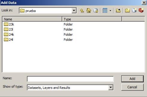 2) Clic en Add Data.. buscamos la carpeta que hemos creado «Cuenca» y dentro veremos las cartas nacionales que hemos descargado al inicio.