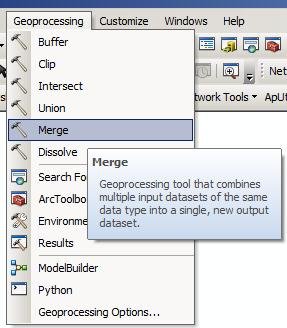 3) Uniremos estos shapes para poder trabajarlas de una manera más cómoda. Para ello nos vamos a Geoprocessing y clic en «Merge».