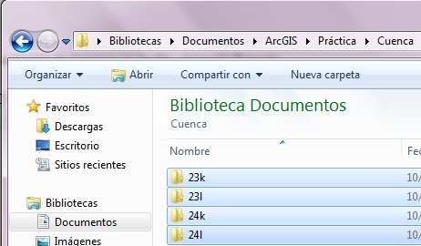 Una vez descargada las cartas con las que vamos a trabajar, nos vamos a la carpeta «Documentos» y dentro de la carpeta ArcGis creamos la carpeta «Cuencas» que será donde almacenaremos las 4 cartas nacionales que descargaron. Allí será la ubicación de nuestro proyecto.