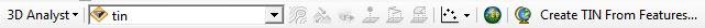 • Ahora en la pestaña «Commands», nos fijamos que esté seleccionado 3D Analyst y en el recuadro derecho buscamos «Create TIN From Features», le damos clic y sin soltar lo arrastramos a la barra de 3D Analyst Tools que está en la barra de menús y debería quedar como en la imagen.