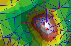 El TIN no es más que las Redes Irregulares de Triángulos, es decir, este medio digital lo que hace es representar la morfología de la superficie terrestre a través de vectores que han sido formadas mediante triangulación de puntos. En la imagen se muestra un ejemplo de como se representan las aristas, que unidas a los puntos (cotas), forman triángulos que al final dan la forma de la superficie terrestre.